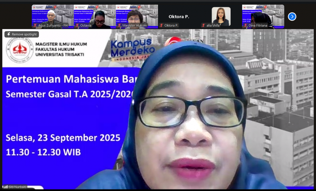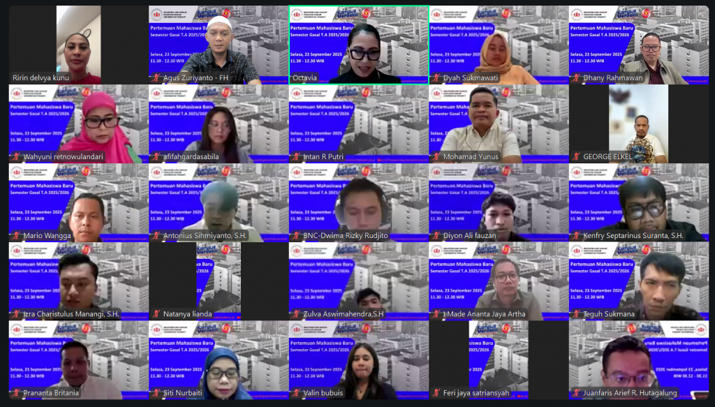 Program Studi Magister Ilmu Hukum resmi menyambut mahasiswa baru angkatan 48 T.A Gasal 2025/2026. Pertemuan perdana yang berlangsung pada hari Selasa, 23 September 2025 tersebut menjadi titik awal perjalanan akademik, sekaligus ajang pengenalan pimpinan Fakultas Hukum dan lingkungan kampus. Acara tersebut dihadiri oleh Dekan FH Prof. Dr. Dra. Hj. Siti Nurbaiti, S.H.,M.Hum beserta dengan jajarannya mulai dari Wakil Dekan I sampai Wakil Dekan IV, Kaprodi MIH Dr. Dhany Rahmawan, S.H.,M.Hum dan Sekprodi Dr. Novina Sri Indiraharti, S.H.,M.Hum.